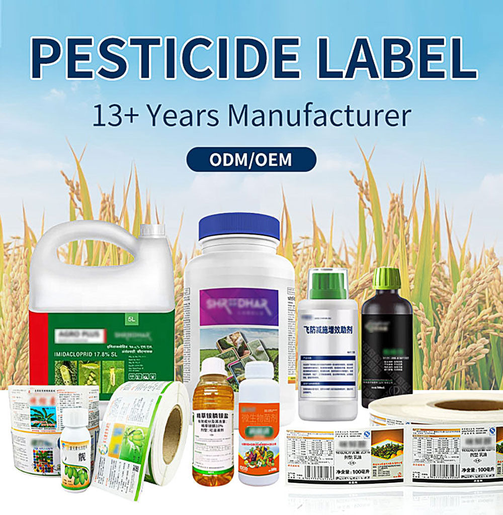 Eco Friendly Custom Pesticide Label Sticker Waterproof PP Pearlescent Film Strong Adhesive Packaging Labels