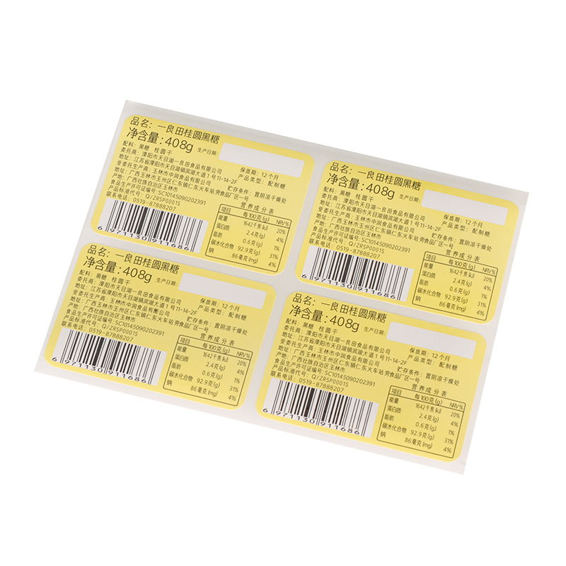 Custom Self Adhesive Package Labels Sheet Printed Stickers Waterproof Coated Paper Food Safety Label