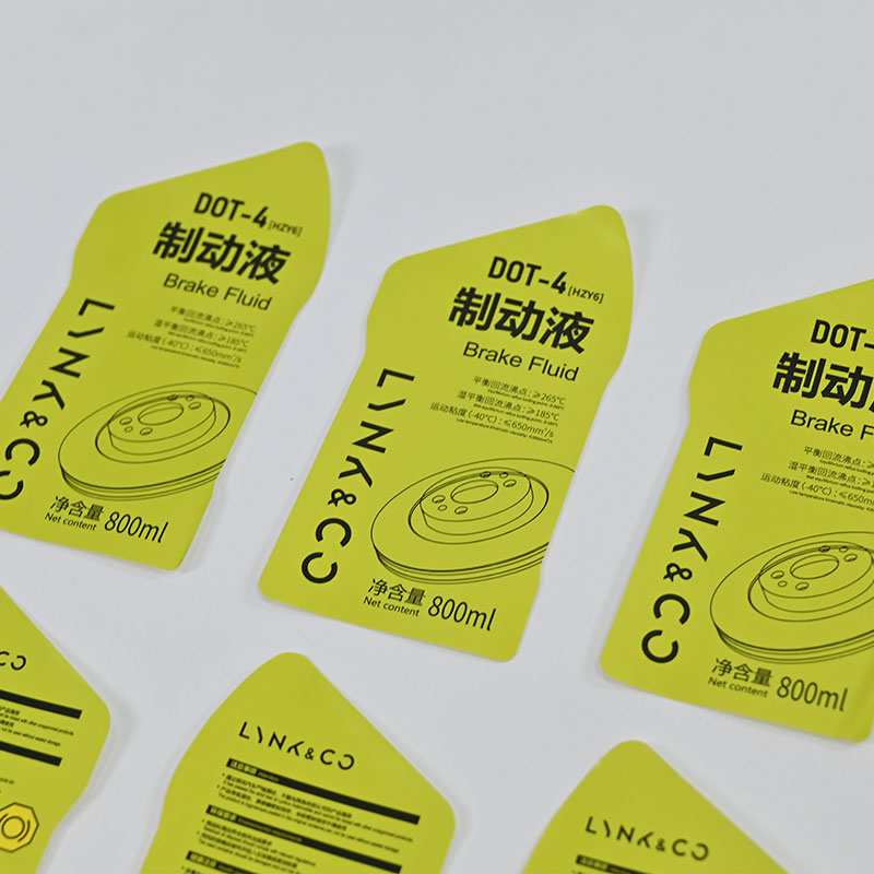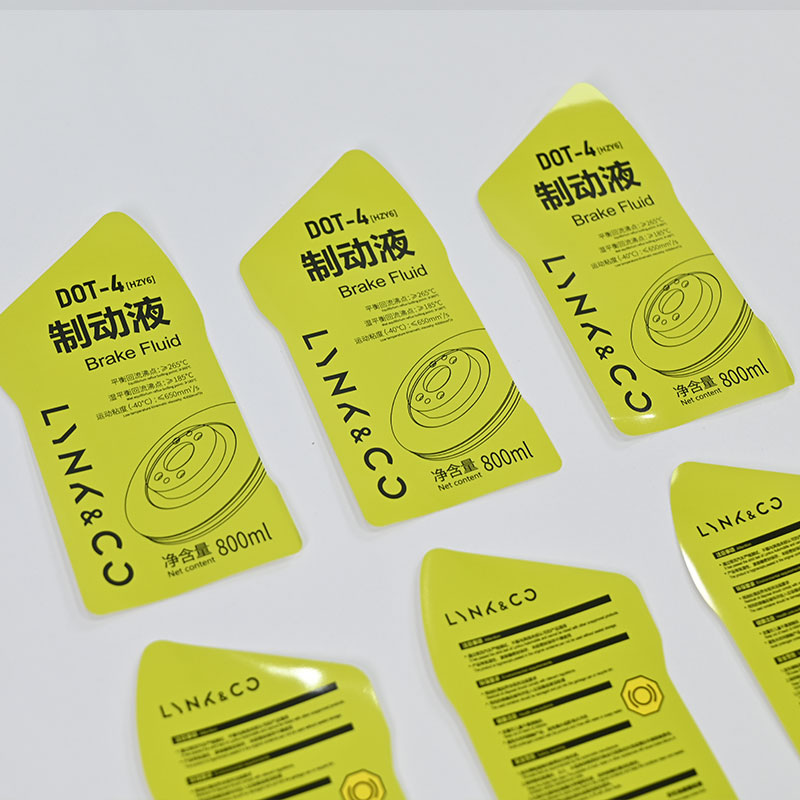 Waterproof UV Printing Labels Adhesive PP Tensile-resistant In-mold Die Cut Packaging Label for Brake Fluid Container