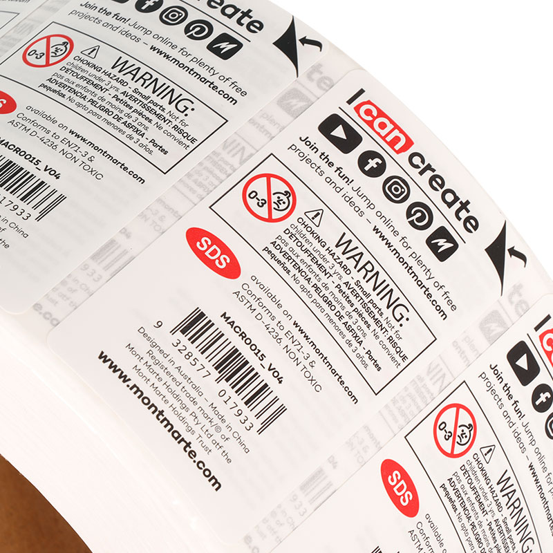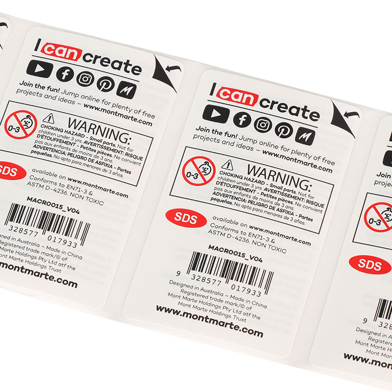 1.This colorful double-layer adhesive label uses glossy white PP material with a surface gloss laminate, significantly enhancing color saturation and visual appeal.