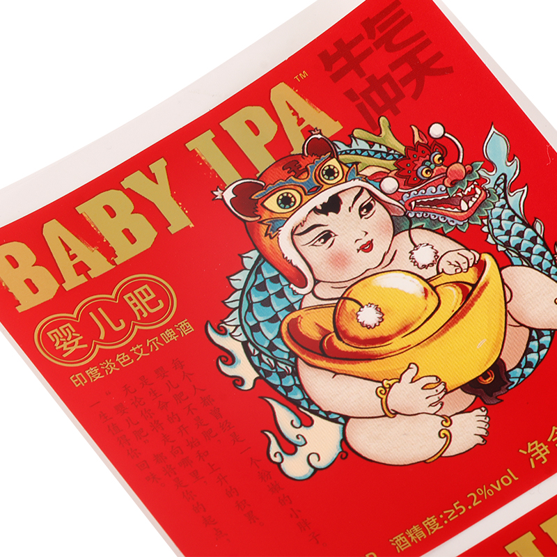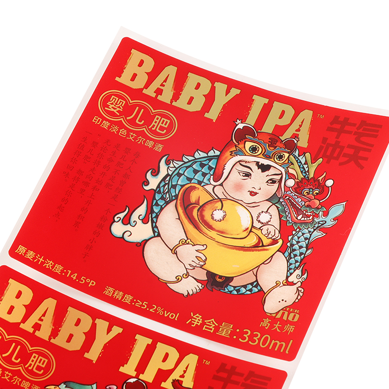 1.Designed for wine bottle applications, these labels are crafted from pearlescent film and enhanced with four-color printing, hot foil stamping, and matte varnish finishes.